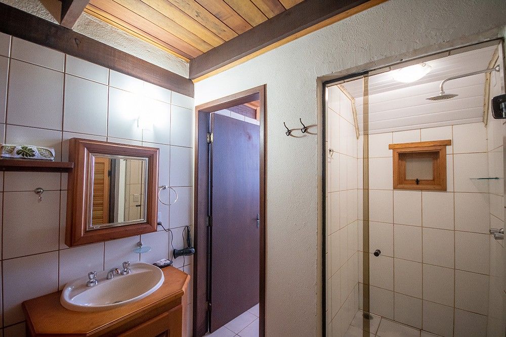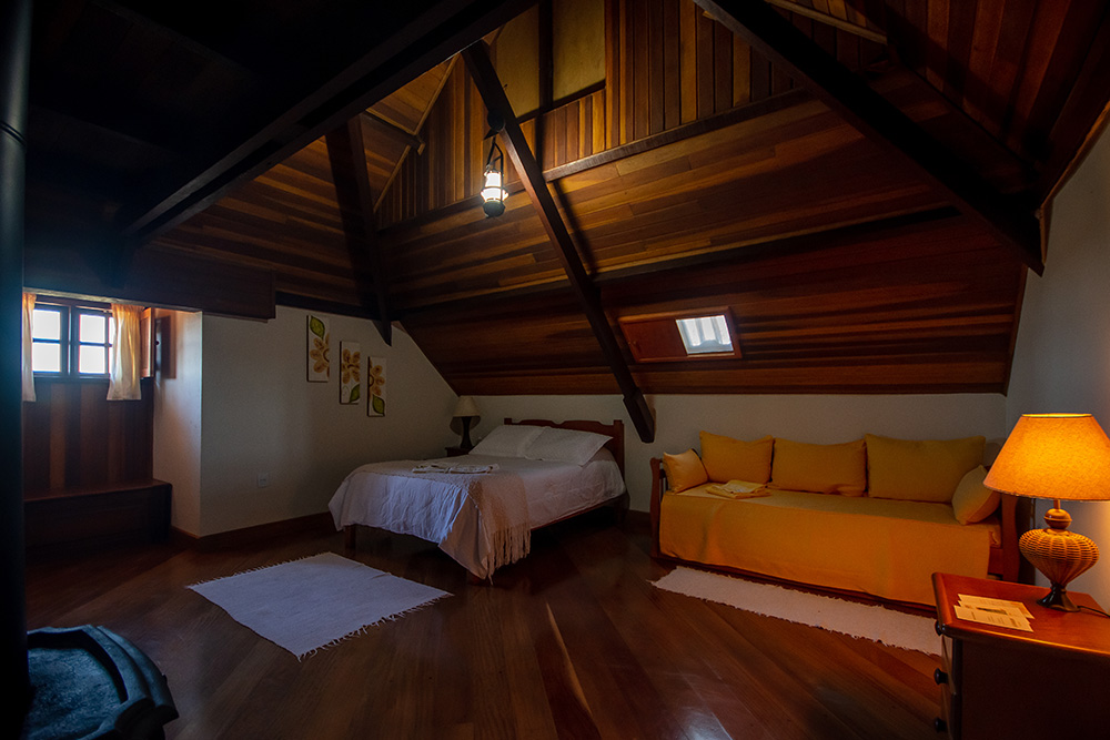 A Suíte Dupla se compõe de 1 cama de casal king size com colchão ortopédico e banheiro privativo. A Suíte Família se compõe de 1 cama de casal e duas camas de solteiro com banheiro privativo.